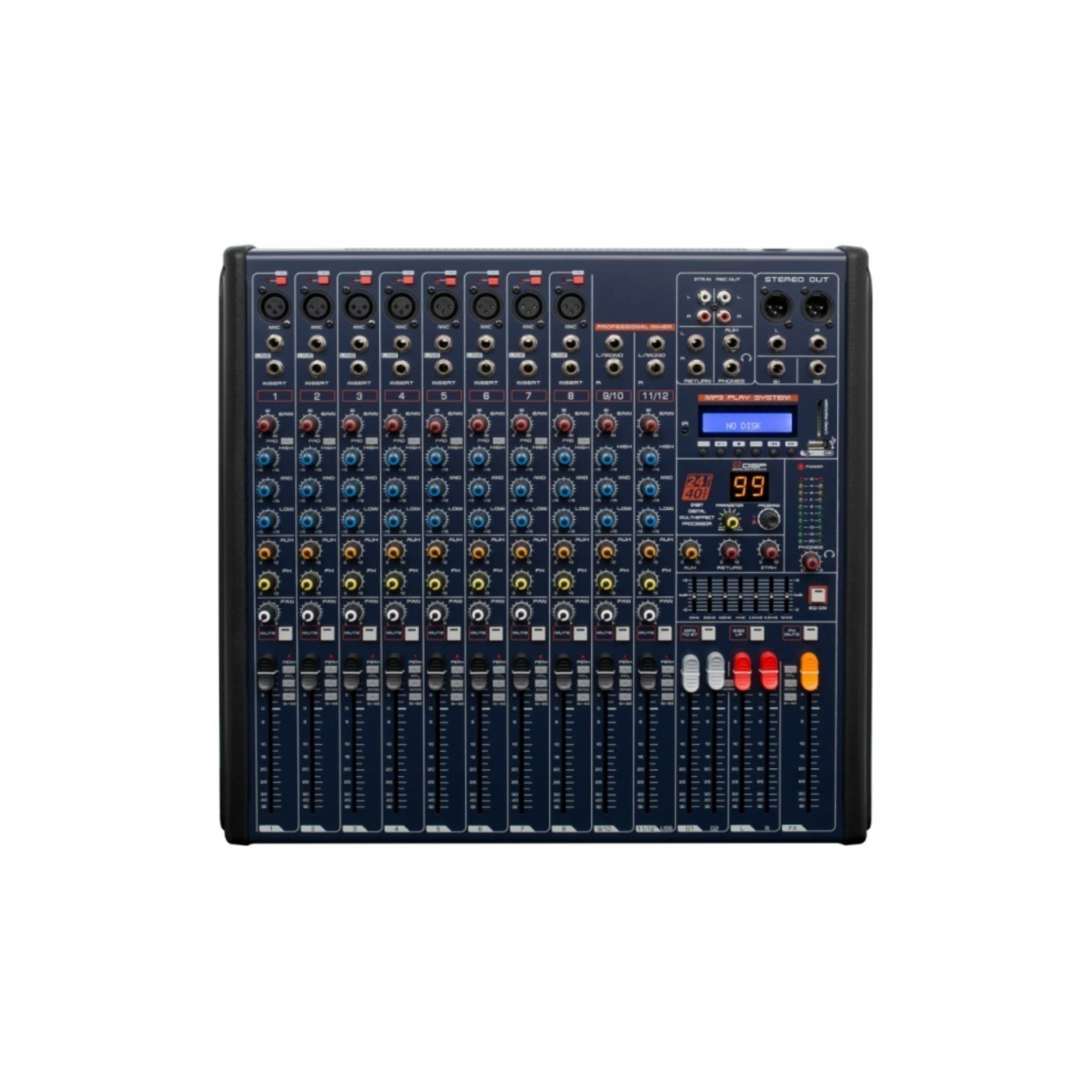 ● Set up 2 auxiliary send, convenient to expand the device.1 effect send, 1 return.